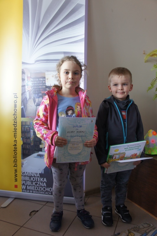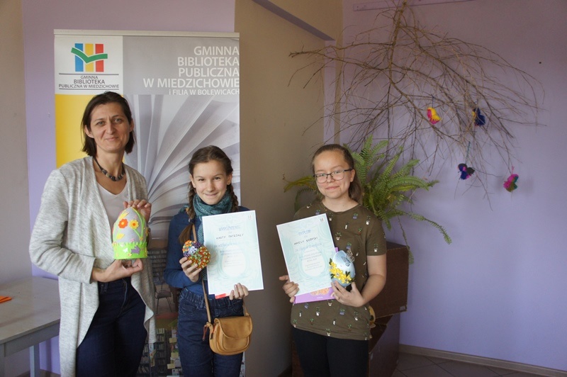 W poniedziałek, 15 kwietnia w bibliotece w Bolewicach, zostałrozstrzygnięty Konkurs na Najpiękniejszą PisankęInspirowaną Korowodem Matka Jaja. Tematyka konkursu była nieprzypadkowa, jako,że GBP w Miedzichowie włączyła się we wspólnie w promowanie rodzimej tradycji Matka Jaja, organizując nie tylko wspomniany konkurs na pisankę, ale i wystawę fotografii ukazującą jego historię. W konkursie nagrodzone zostały cztery osoby. Pierwsze miejsce zajął Dominik Kluj, który uszył jajko, które pięknie ozdobił kwiatami z filcu i innymi ozdobami. Drugie miejsce przydało w udziale Amelii Łodydze, natomiast trzecie Klarze Kowali. Komisja konkursowa postanowiła równieżwyróżnić pisankę Marty Patrzały. Dziękujemy za wzięcie udziału wszystkim uczestnikom konkursu.