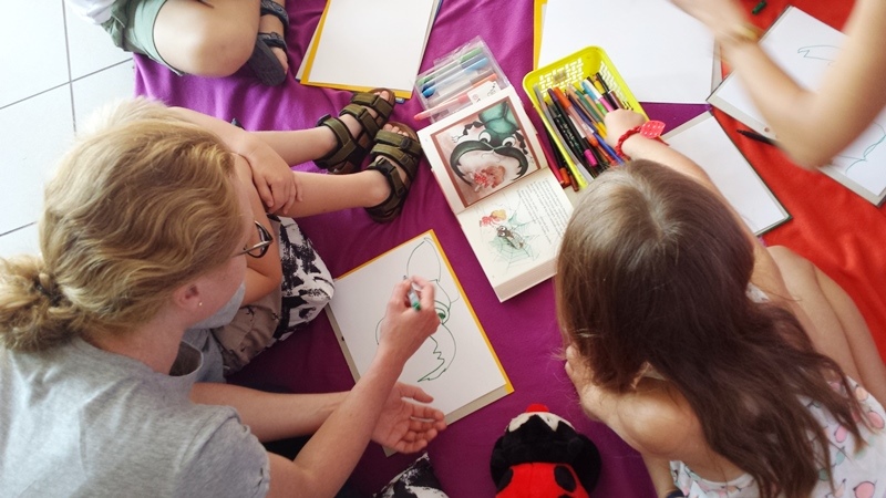 W ostatnim tygodniu wakacji tj. od 26 – 30 sierpnia codziennie o godz. 11.00, spotykaliśmy się w przestrzeni opowieści. Bibliotekarki w towarzystwie muzyka, czytały opowieści i wiersze z serii Poczytaj mi mamo, wznowionej niedawno przez wydawnictwo Nasza Księgarnia. Nie zabrakło też innych atrakcji. Można było, nauczyć się rysować, malować, pograć na instrumentach, no i oczywiście podyskutować o usłyszanych historiach. Każdy dzień był inny i każdy wyjątkowy. Rzecz jasna nie zabrakło nieśmiałego Filemona i zrzędliwy Bonifacego, Pana Maluśkiewicza i wieloryba, a także historii o chorym kotku, który leżał w łóżeczku. Spotkania cieszyły się zainteresowaniem zarówno dzieci jak i dorosłych.